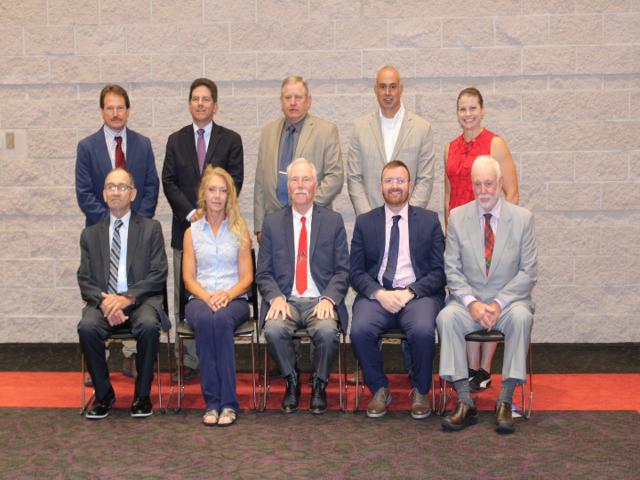 L-R: Laurie Winkelman, Rich Hill, Bruce Heilinger, Jones Smith, Brent Moyer, Dayne Voelker, Sherry Smith, Kyle Thompson; Seated: Executive Secretary Norm Magnussen and Presiden Brian Pacheco (not present: Matt Hendel)